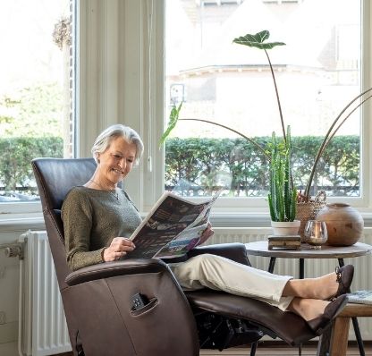 Naast alle bovenstaande tips is het van belang om met de voeten omhoog te zitten en te liggen. Onze relaxfauteuils kunt u naar eigen wens instellen. Door de fauteuil in de relax- of hart-rust-stand te zetten, komen uw voeten omhoog.