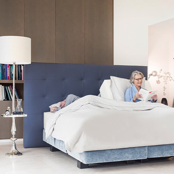 Met de elektrische seniorenbedden van Well-Fair kunt u genieten van ultiem comfort voor het slapengaan. Stel het bed eenvoudig in op uw favoriete houding, zodat u heerlijk kunt ontspannen. Heeft u bijvoorbeeld behoefte aan extra ondersteuning voor uw rug of benen? Met één druk op de knop past u het bed aan uw wensen aan, zodat u volledig tot rust komt en van een ontspannen nachtrust kunt genieten. Zo voorkomt u een slechte nachtrust.