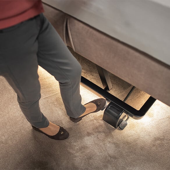 ’s Nachts wakker worden kan uw slaapcyclus verstoren en zorgen dat u uiteindelijk de hele nacht niet geslapen heeft. Ieder Well-Fair bed is uitgerust met automatische uitstapverlichting. Precies genoeg licht om veilig uw weg te vinden, zonder uw slaap onnodig te onderbreken. De verlichting is zacht genoeg om zowel uw nachtrust als die van uw partner niet te verstoren, zodat u rustig verder kunt slapen en uitgerust wakker wordt. Lees ook onze blog over verlichting in uw slaapkamer!