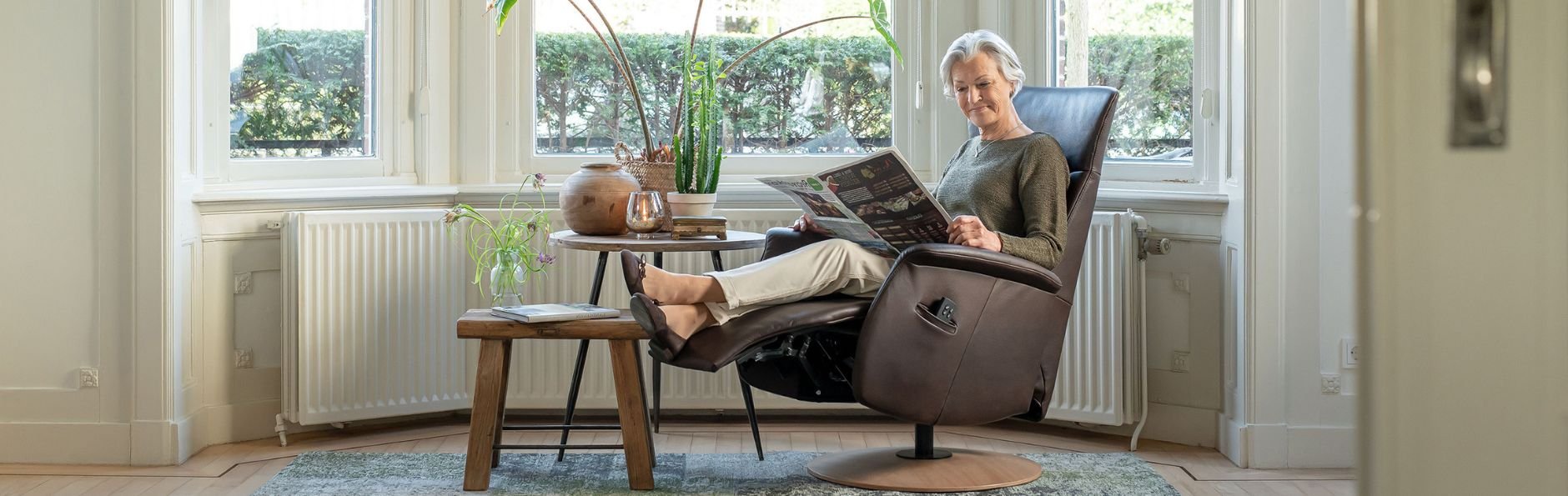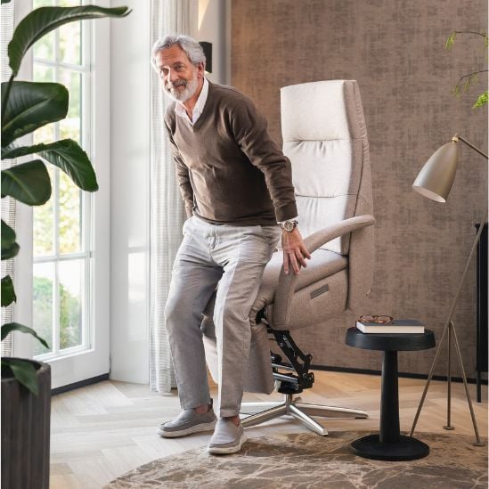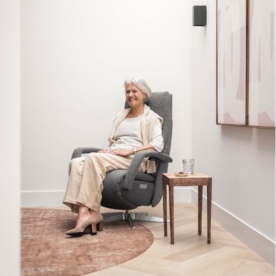 Ook is ze volledig naar uw wensen en voorkeuren samen te stellen. Het model, de voet, de armleuningen, de functionaliteiten, stof met of zonder print, hoogwaardig leder. Wij bieden een seniorenstoel voor elk interieur.